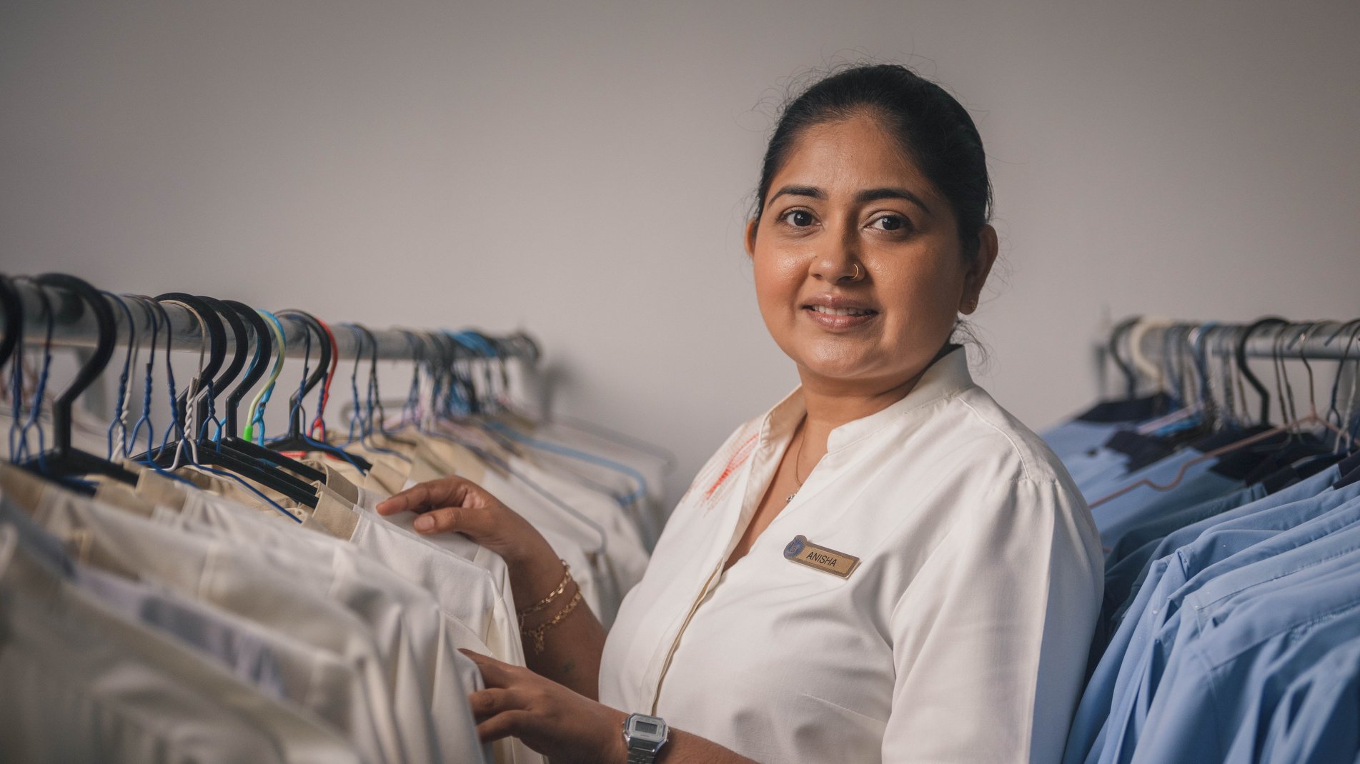 Every morning, Anisha and her colleagues are all smiles as they distribute uniforms to over 400 Artisans. She fosters an atmosphere of camaraderie and support, often joking with her colleagues to ease their stress. She is also responsible for accounting and invoicing for garment care, and works closely with the Main Linen Department.