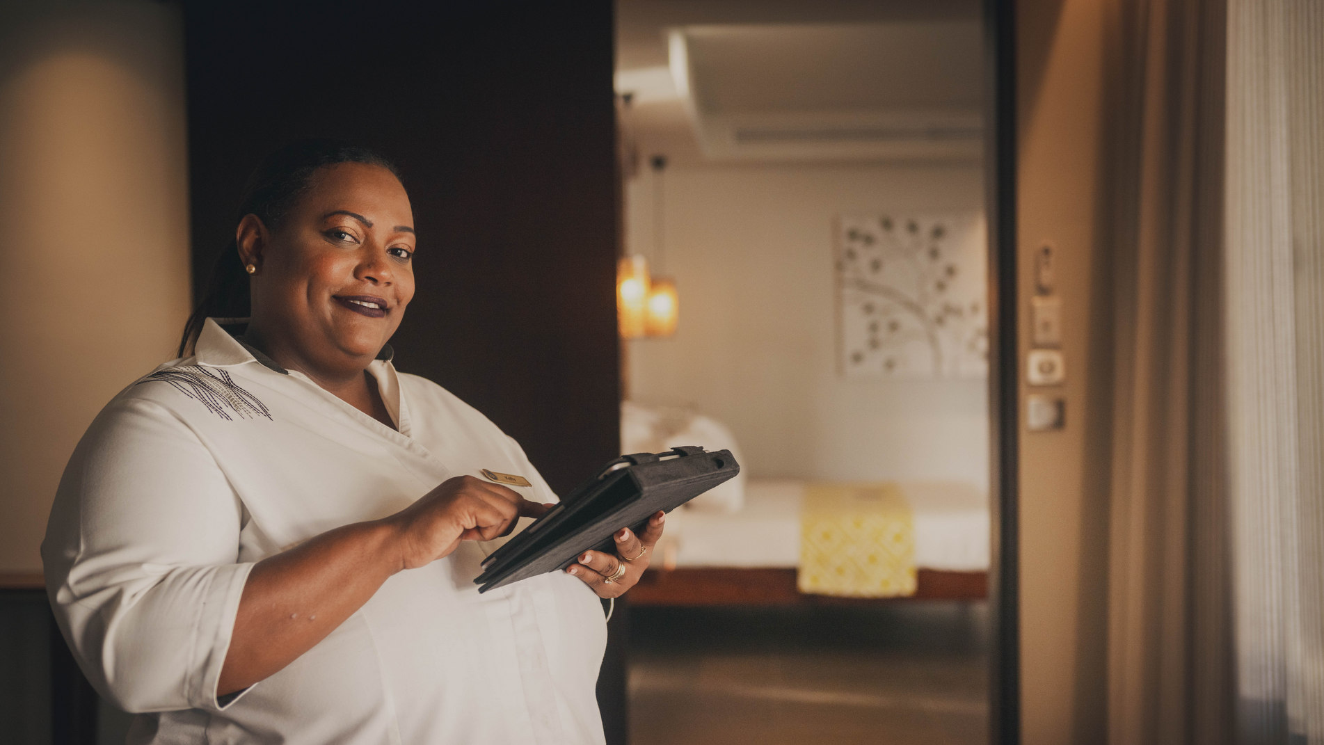 Elle s’emploie donc à les accueillir chaleureusement, toujours avec le sourire, à les guider à travers l'hôtel, et à bien les informer des services disponibles. Cela passe aussi par le fait de communiquer sur l’importance de l’écologie et sur l’engagement de Beachcomber pour la durabilité.